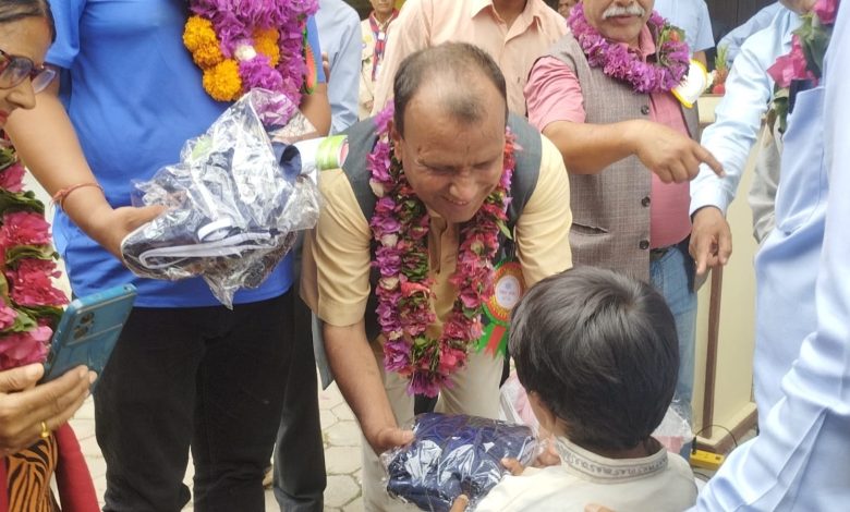 नेता तथा समाजसेवी भरत चौलागाईद्वारा ४ सय विद्यार्थीलाई ट्याकसुट वितरण
