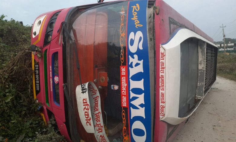 चरिकोटबाट काँकरभिट्टा जादै गरेको रात्रिबस झापाको माईधार चोकमा दुर्घटना, १९ जना घाइते