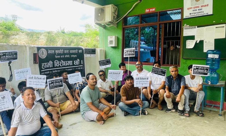 रामेछाप । नेपाल सुनचादी कला ब्यबसायी संघ जिल्ला शाखा रामेछाप २२ दिन देखि आन्दोलनरत छ । संघले आन्दोलनको २२ औं दिन आज सोमबार धर्ना कार्यक्रम गरेको छ । करदाता सेवा कार्यालय मन्थलिमा धर्ना कार्यक्रम गरेको थियो । संघका कार्यवाहाक अध्यक्ष तुल बहादुर विश्वकर्माको नेतृत्वमा करदाता सेवा कार्यालय प्रमुख कृष्ण आचार्यलाई जानकारी गराई कार्यालयको मुल गेटमा धर्ना बसेका थिए । घर्नाका…